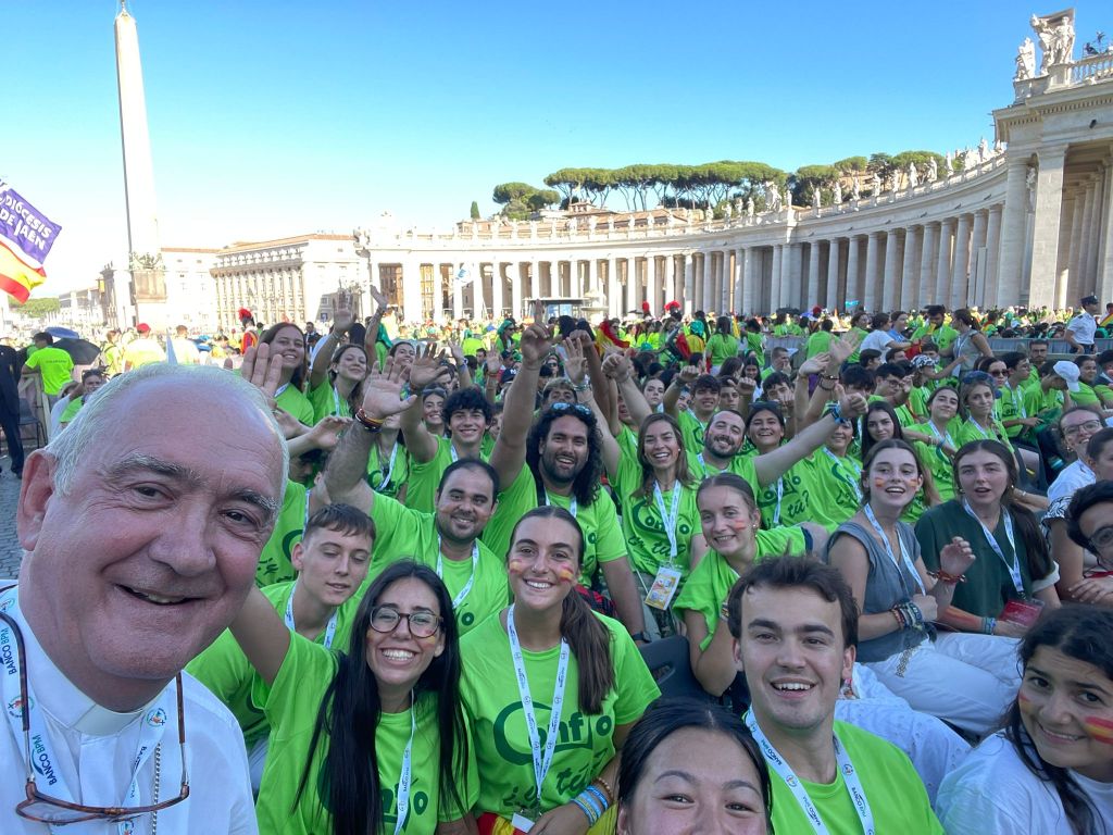 El viernes 1 atravesaban la Puerta Santa de la Basílica de San Pablo Extramuros. Y por la tarde, compartían con cerca de otros 30.000 españoles una eucaristía en la plaza de San Pedro. El sábado, la reunión de los españoles que participan en el este Jubileo de los Jóvenes 2025, participaron en una eucaristía en la conocida como iglesia de los españoles: Santa María de Santiago y Montserrat.